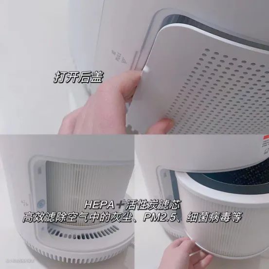PM2.5的去除率大于99.98%、甲醛去除率大于94.9%、颗粒物CADE值为309.2m³/h*。就算把它放在家里积灰的角落,底部的进风口也能通过HEPA+活性炭滤芯高效滤除空气中的灰尘、PM2.5、细菌病毒等,保证释放洁净气流,如此一来空气也显得格外清新。