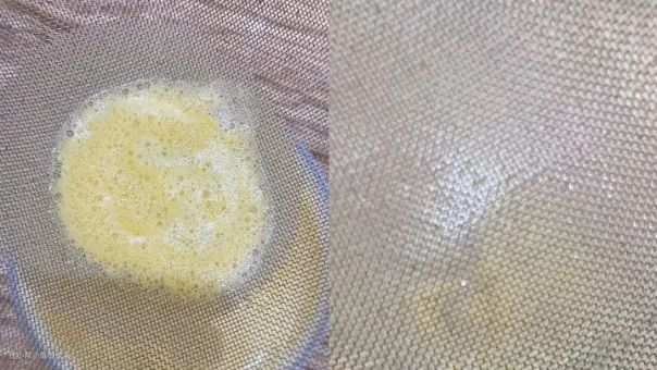将最后一滴豆浆倒出后,滤勺上只留有豆浆的泡沫,而泡沫中间及周围,都没有发现残渣的身影,用水冲后滤网上只留有水渍,看来蓝宝所说的细腻无渣,确实真实可信,没有水分。