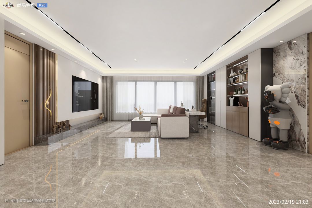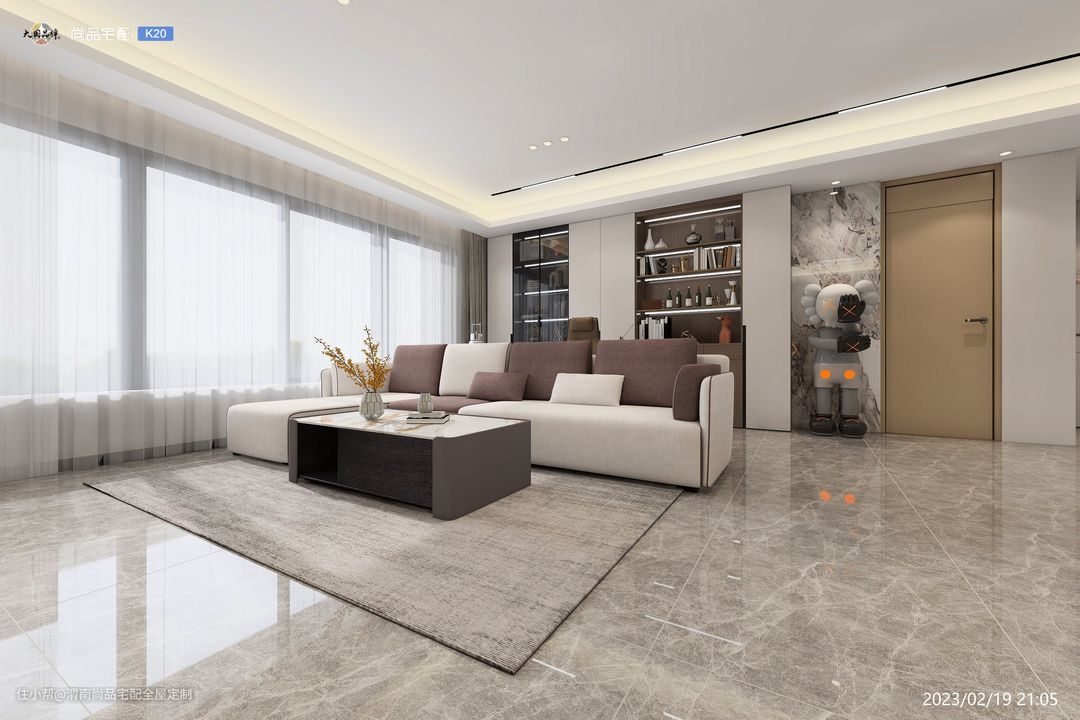 背靠整排透明书架+一体收纳柜,封闭与半开放相结合的柜体,整体感很强,颜值和实用性共存,在增加足够的收纳空间的同时,打造出一个自由、舒适且不单调的艺术氛围。让客厅空间更加现代优雅,充满时尚高级感。