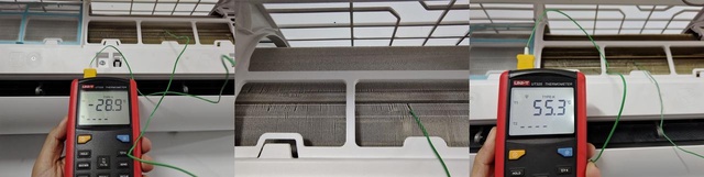 针对酷省电空调自清洁过程进行了实测,清洁过程中蒸发器和翅片温度可以达到55℃以上的高温,针对清洁效果完全不用担心。