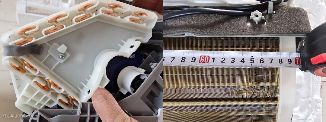 内机蒸发器采用了16组铜管,共计32根,铜管长度约70cm、管径5mm。