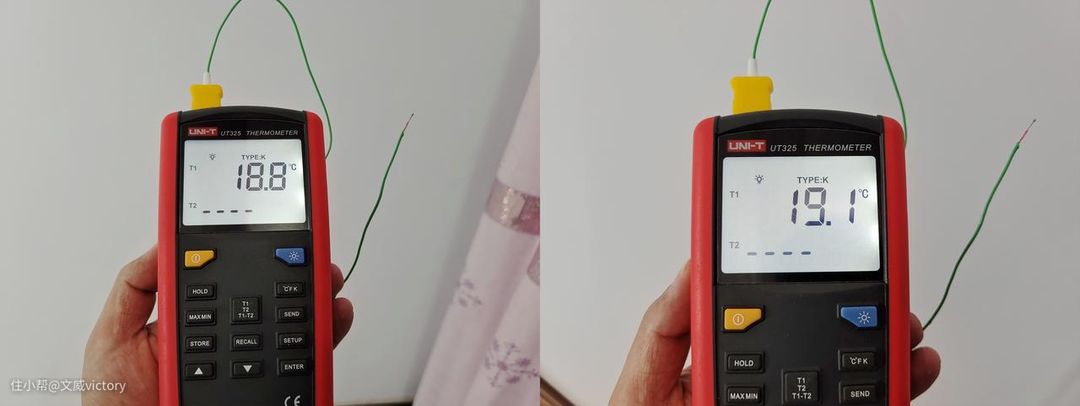 此时房间最远端的位置温度在19℃左右,制热均匀性很不错。