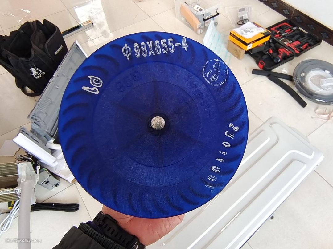 酷省电1.5p挂机空调风轮直径98mm、长度655m,说大尺寸风轮一点不为过。