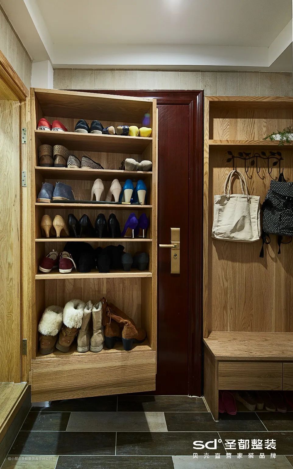 根据家居环境的颜色、材质来定制柜体,让收纳柜和周围环境融为一体,不仅收纳力翻倍,还保证了统一的视效,更显干净利落。