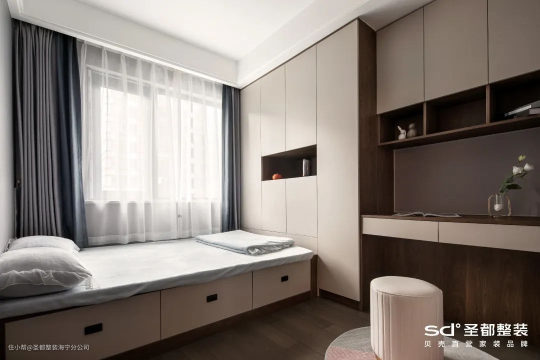 当卧室衣柜隐形于墙面时,更易营造出简洁的睡眠空间,有利于居者安心入睡。