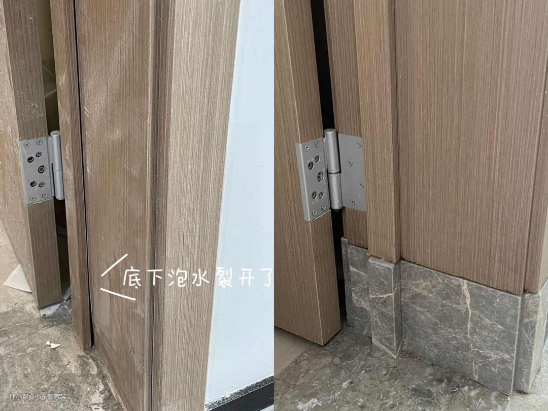 木门再怎么升级它也是木门,遇水遇潮气会变形,严重的情况下甚至会掉漆开裂。