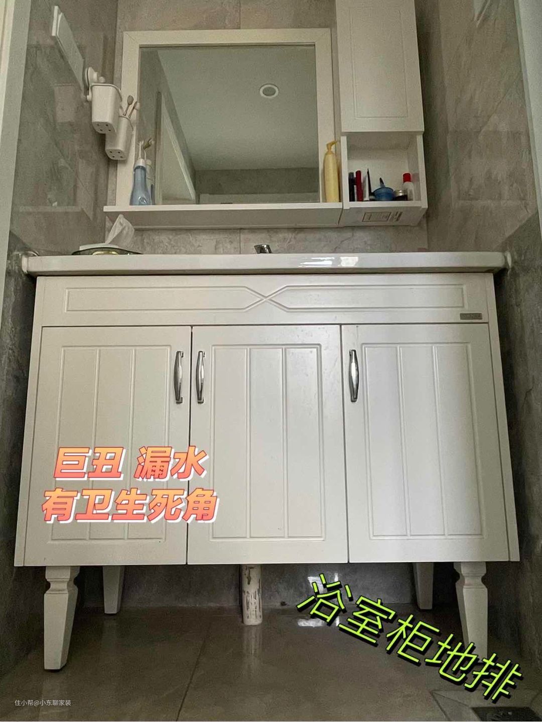 浴室柜下水千万要自己盯紧装修公司,装修前我做的功课,浴室柜排水做墙排美观没有卫生死角,也跟装修公司说了,答应的好好的,但是到房子验收的时候就变成地排了,好丑。