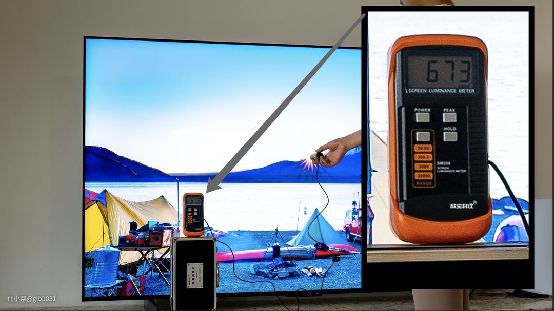 设计测试在播放 HDR 测试视频的时候,屏幕太阳升起位置,亮度也达到了673 nits。