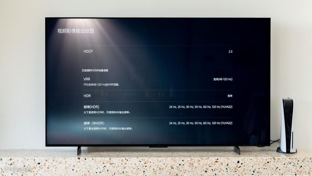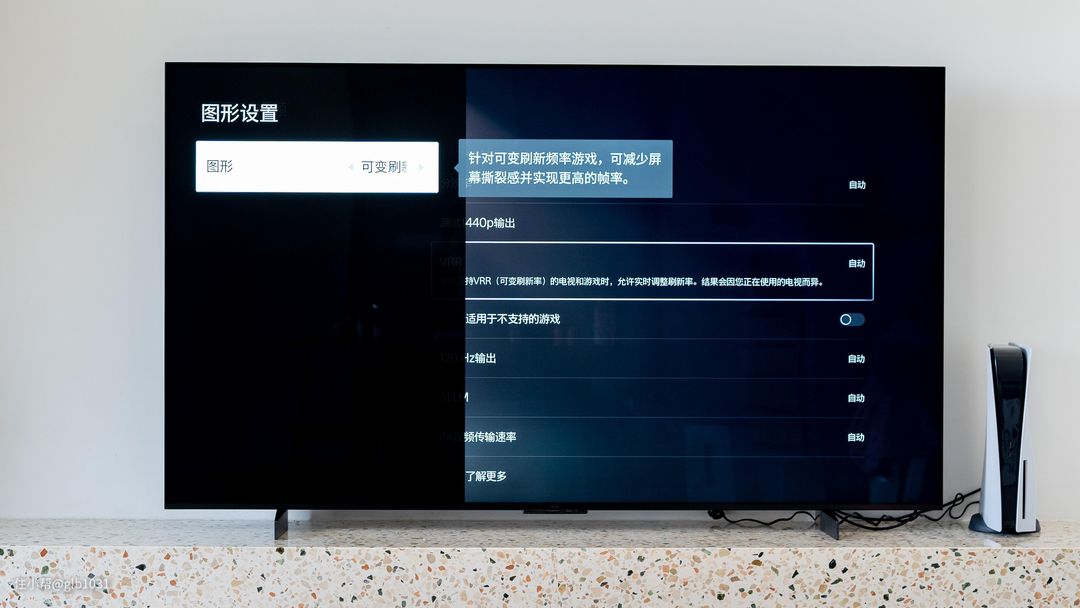 如果你也是TCL 电视的话,发现打开PS5 或者是XSX 的话可以在图形设置中找到图形可变刷新率一并开启,开启之后就可以看到已经开始支持VRR 了。