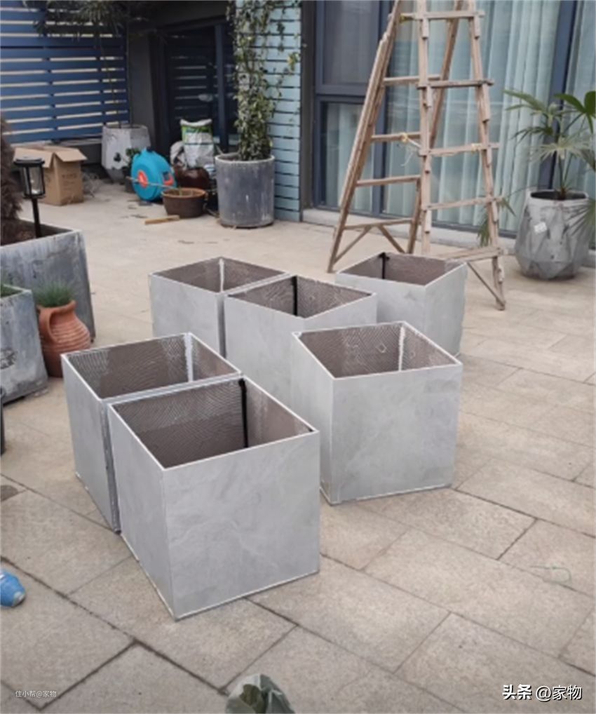 用结构胶把瓷砖粘好(形成花盆的模样),网购铝合金L型玻璃夹,给四个角做个加固处理,一个花盆就成型了,外观简洁用着顺手,还不容易坏~