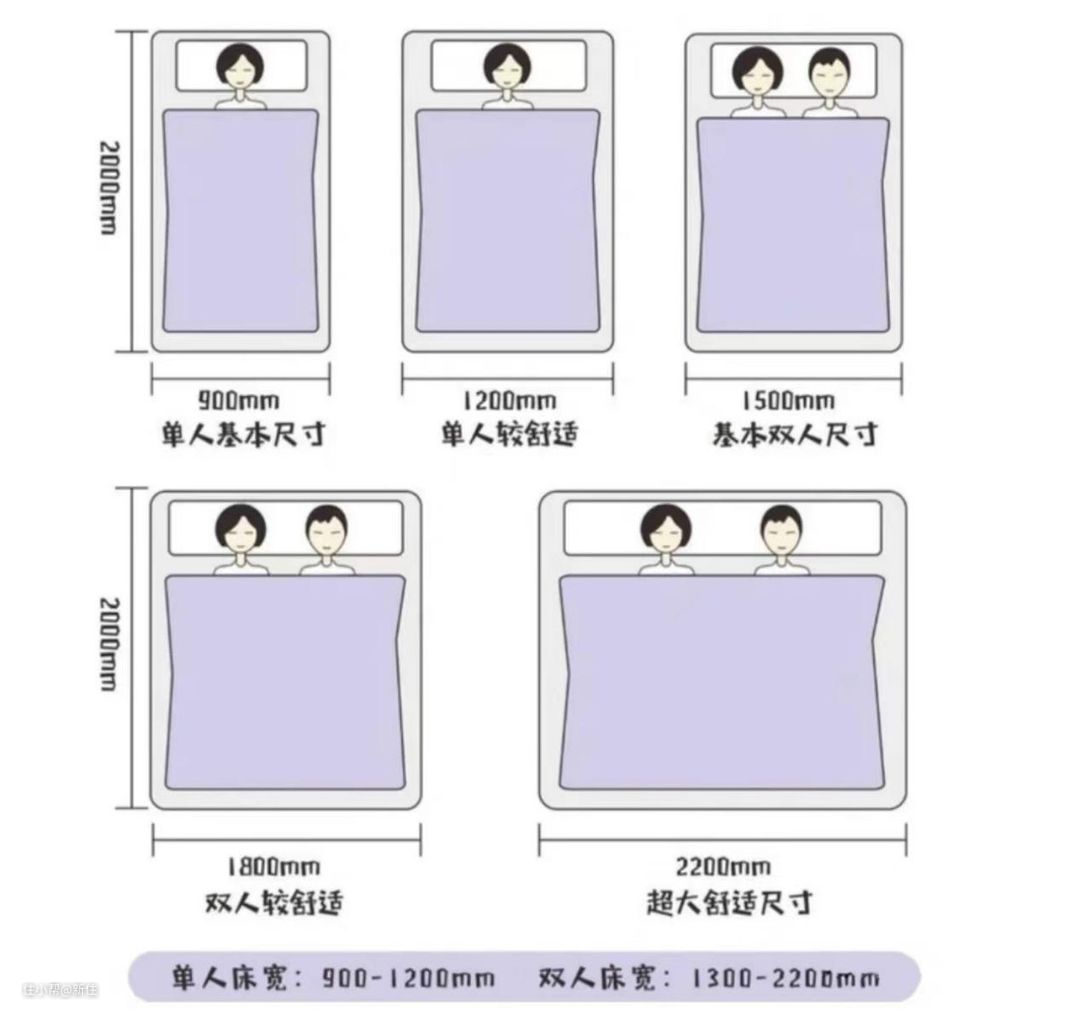 布局的前提是尺寸,所以还是老规矩,下面先讲卧室物件的尺寸。