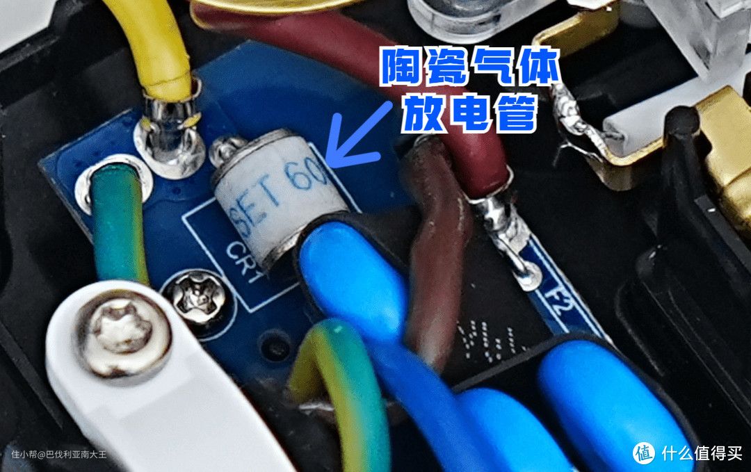 陶瓷气体放电管子—分离强电流:另外在电路上还带有陶瓷气体放电管,可以吸收多余的电流,经过地线化解,使用更加安全。