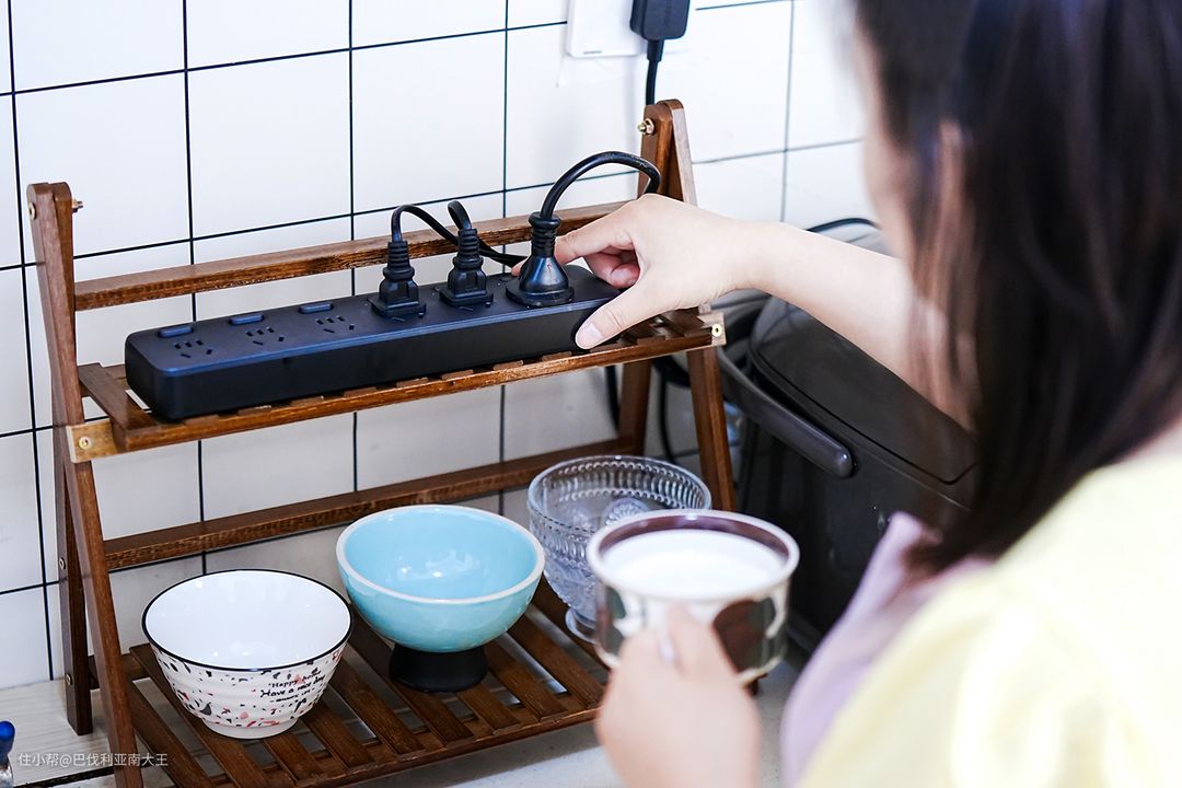 所以建议选择同时具备防雷+防火功能的新国标排插,最好一位一开关,方便关闭闲置厨房电器。