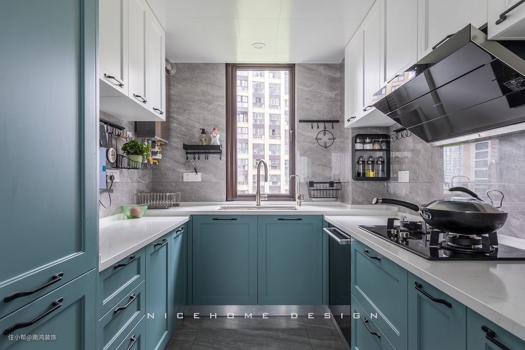 如果厨房门宽度不够1.8米,可以首选外挂侧装移门,把门装在厨房门墙的外侧或内侧,这样可以完全打开,更大限度的保留进出宽度;如果厨房门洞宽度在1.2米以内,可以做成单侧,如果宽度超过1.2米,可以做成双侧,视觉上更对称,颜值也更高。