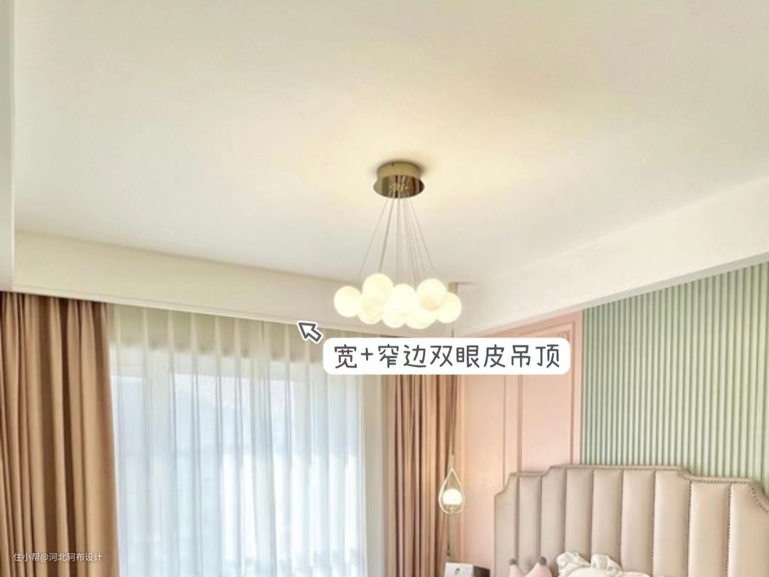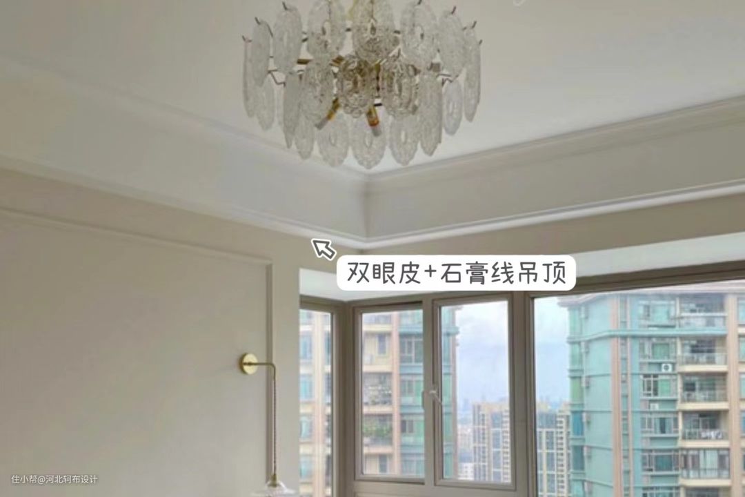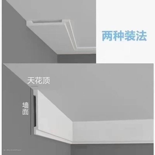●成品双眼皮石膏线常规高度有10cm(6+4)、12cm(9+3)、15cm(12+3)、18cm(15+3)、20cm(15+5)等。如果有窗帘盒或中央空调适当下调30cm左右,边吊表层石膏板厚度为12cm,底层石膏板厚度为9cm。可以选择墙面或顶面安装方式,可以节约成本,减少施工时间。
