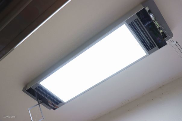 可以看到在安装上去之后,整个晾衣架看起来非常小巧,仅占了整个天花板很少的一部分(当然,展开来之后体型会大上一倍哦)。