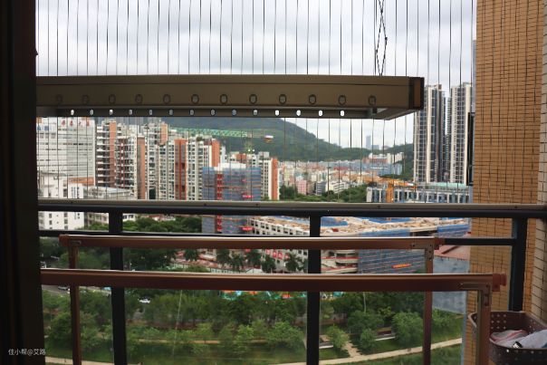 换上电动晾衣架撤掉立式晾衣架之后,从客厅望出去,明显感觉舒服了很多,并且由于天花板比较高,晾在杆上的东西高度比较合适,不会影响到我们在阳台走动,也真正实现了艾路对于提高阳台空间利用率的需求。