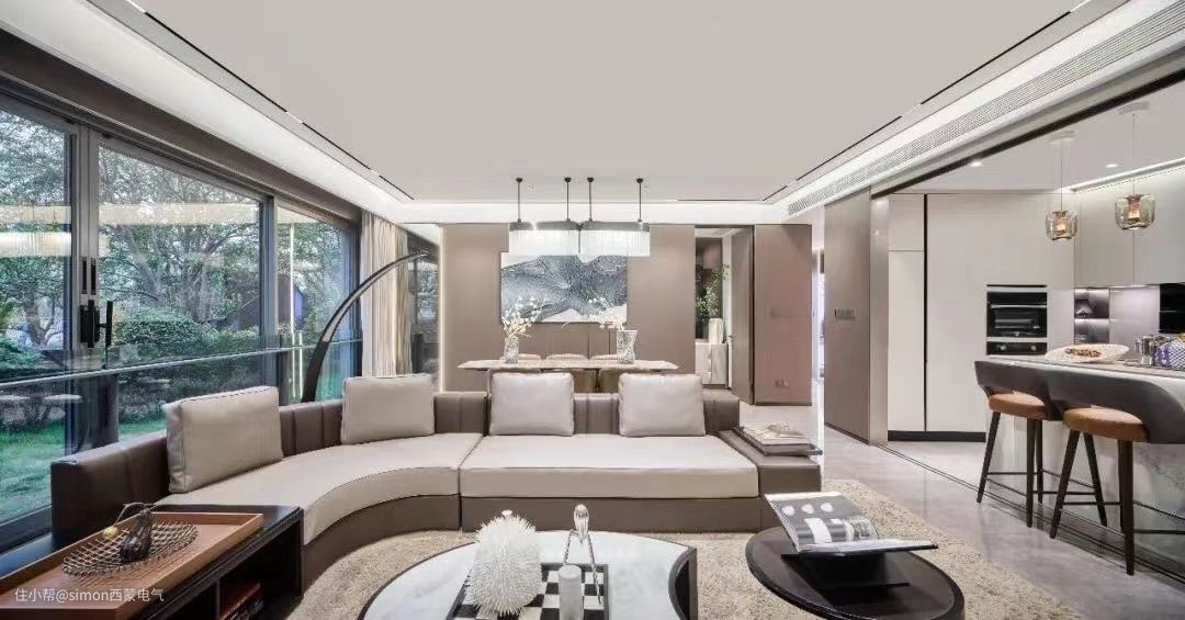 客厅用光复杂,且家电较多,开关插座必须考虑周到。