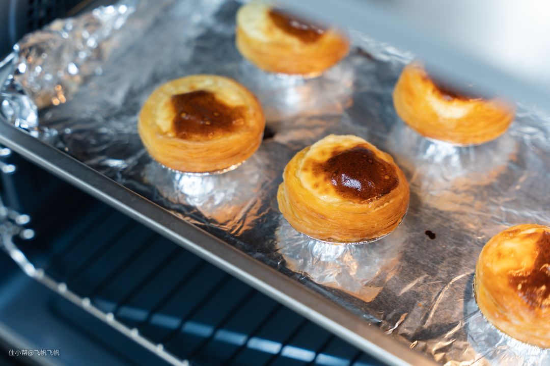这是出炉时候最左边蛋挞的情况,上色与酥皮的起酥程度都非常好,左右双热风风扇还是非常有用的,这也是我买凯度这台集成灶的原因,感觉它算是买蒸烤箱送灶台+烟机...