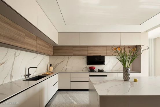 大型L厨房造型+操作台提供了方便的烹饪环境,美观性和实用性兼具。