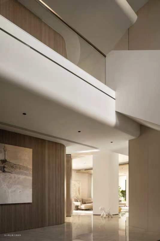 白色玩具小马,在空荡空间增添了几分童趣感,白色顶梁柱与它相处的悠然自得。大面积原木作为楼梯空间的原材料,让空间舒适的居住环境,让整个空间变得更加简约舒适。