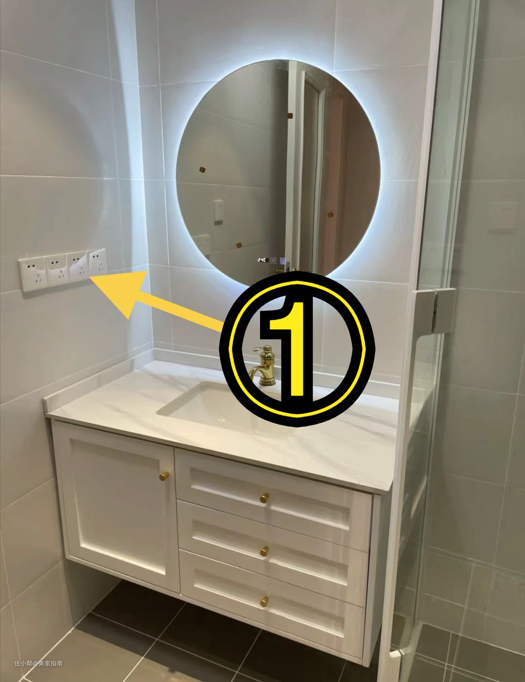 卫生间的插座预留是否得当,也直接关系着入住后的体验。一般插座的预留可以分为下面这三个部分。