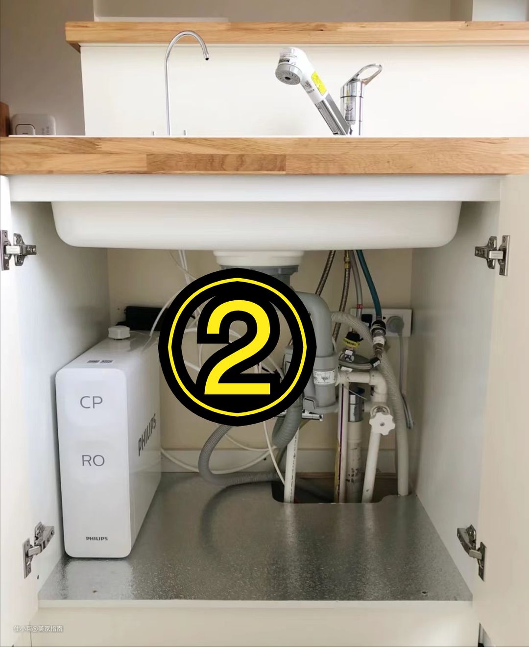 注意,上面的图①与图②并不是同一个位置。图①主要是给洗碗机、消毒柜以及蒸烤箱一体机预留的。而图②则是在水槽的下方。主要用于净水机、小厨宝、垃圾处理器等设备。