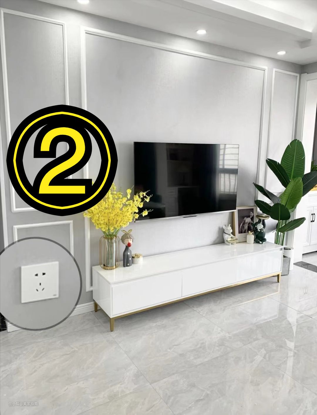 电视墙上的插座,又可以分为两个位置。一个是为电视而预留(图①),另外一个则是为扫地机器人、空气净化器而预留(图②)。