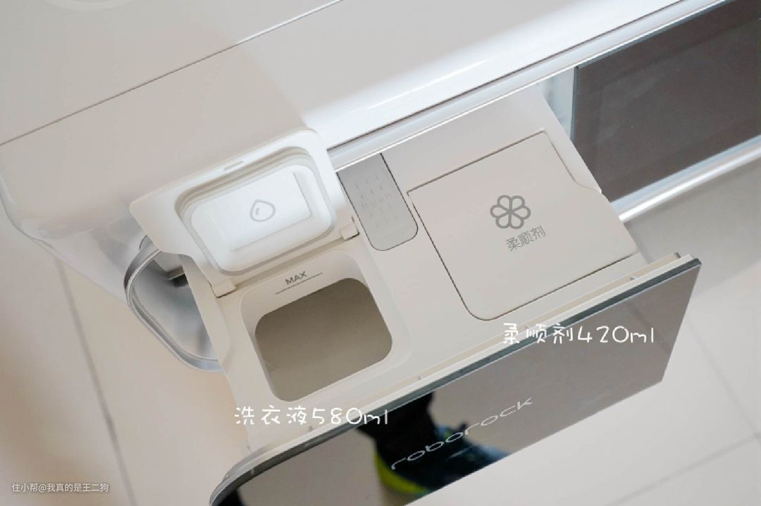 添加洗衣耗材是个麻烦的事情,传统洗衣机每次都要单独添加洗衣液和柔顺剂,同时衣物数量的变化还需要自己判断加入洗衣液/柔顺剂的多少。石头H1采用了双路智能投料设计,580ml的洗衣液容量+420ml的柔顺剂容量,添加一次可以满足一个月的使用需求。不再需要反复添加洗衣耗材,方便又省心。同时智能投放可以精准的进行投放,确保衣物清洗干净的同时不浪费洗衣液和柔顺剂。