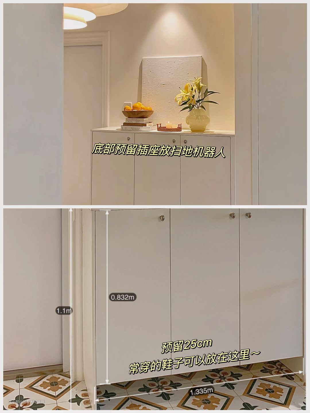 底部柜子活动板预留插座可以放扫地机器人