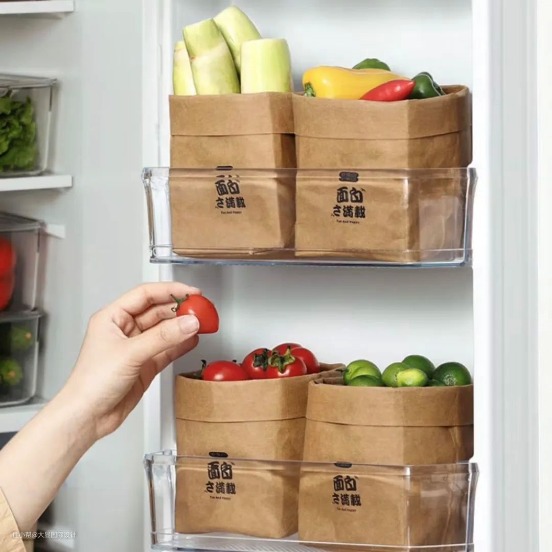 这种牛皮纸袋也是最近比较火的保鲜神器,有可水洗款和普通款,主要用来放水果蔬菜。