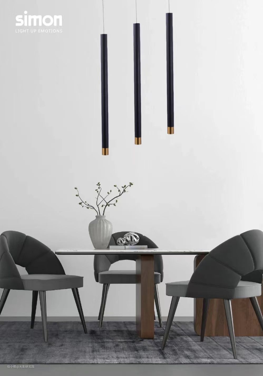 此外,坐在餐椅上时,双眼对视与吊灯下缘呈现 30 - 40 度交错的位置,不会挡住人和人的交流视线,就算起身也不会撞到头。