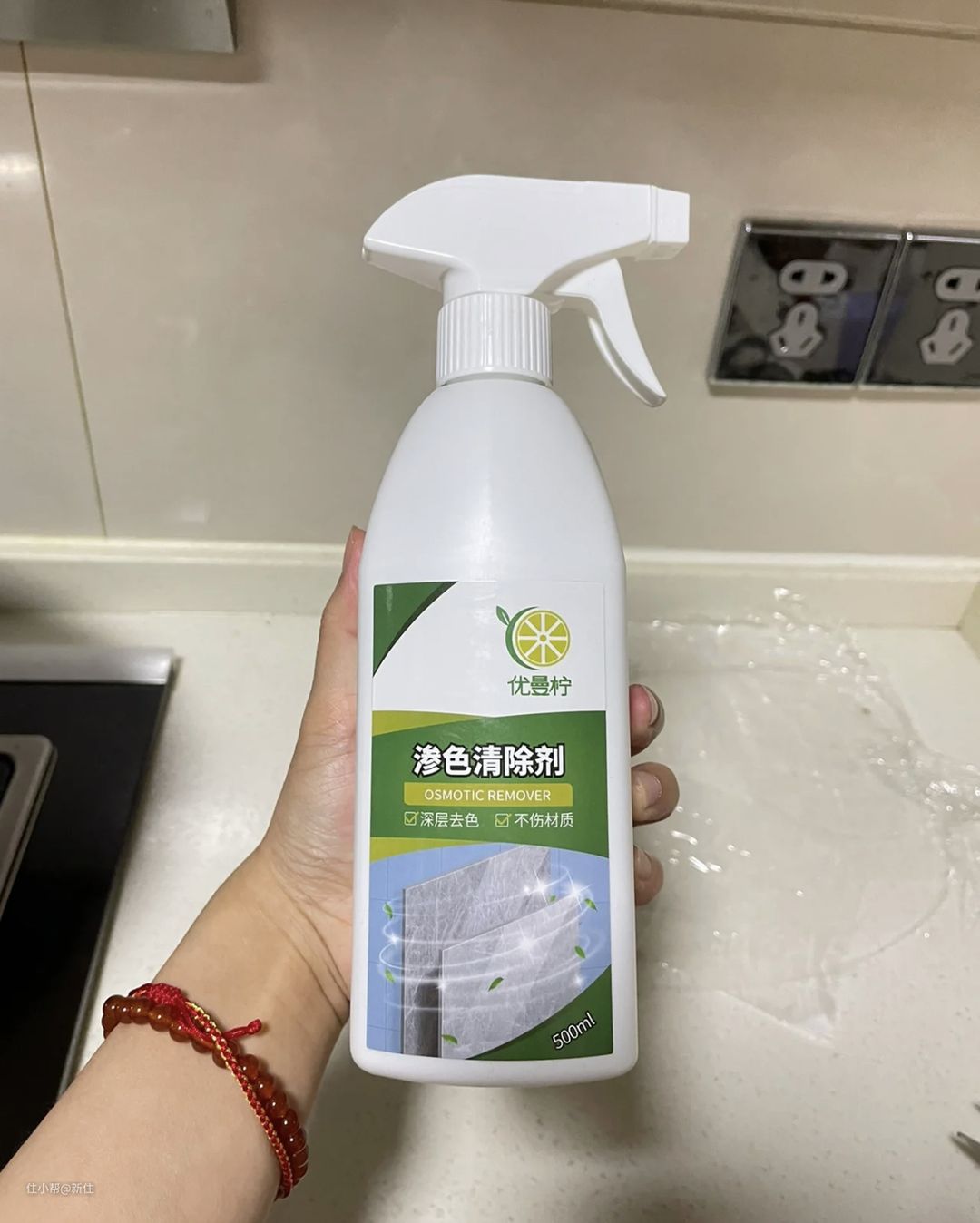 因为有渗色发生,别无二选,就得用它,如果没有渗色,它依旧是普通清洁剂,来喷着清洗石材(窗台石、厨房台面、大理石、门槛石)都很惊喜。