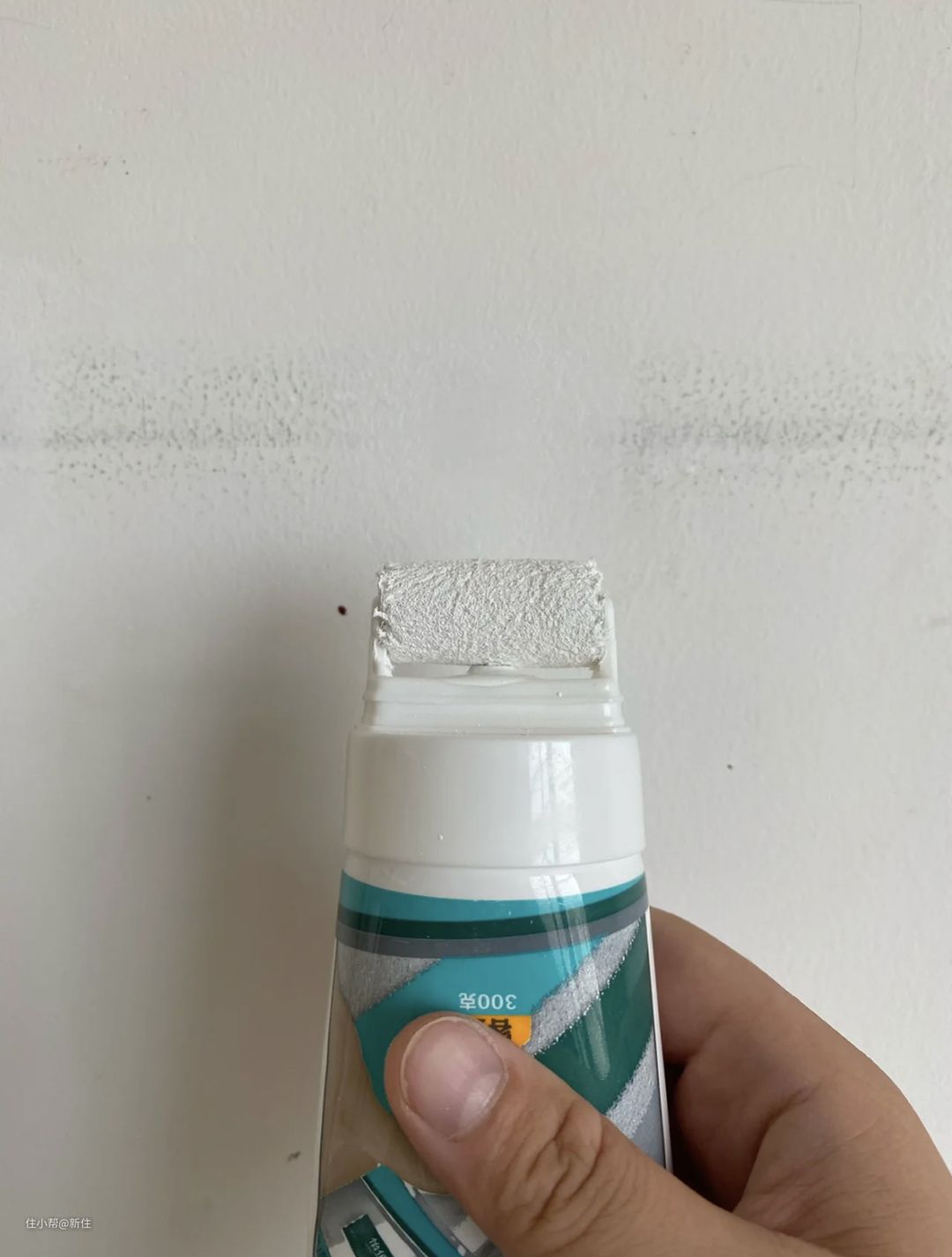 如果家里有装修剩下的乳胶漆,直接用剩漆刷着修补(这也是劝大家留点乳胶漆的原因)。