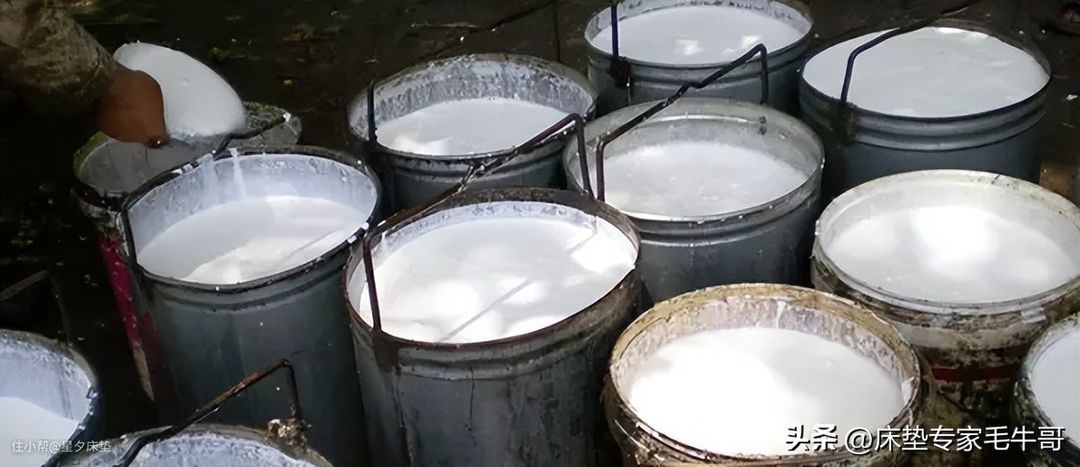 所以无论是运回本地工厂加工生产,还是密封存储后出口运输到国外,都需要加氨水,来解决天然乳胶原液会凝固成胶的问题。氨水既能杀菌,又能提供碱性环境,以防止乳胶固化和变质,最关键是费用不高不会大幅增加成本。然而不少商家为了标榜自家产品,会在氨水上大做文章,说自己卖的是泰国进口的,不加入任何氨水。毛牛哥的建议是别听他扯犊子,不加氨水的天然橡胶原液分分钟永久凝固给你看。