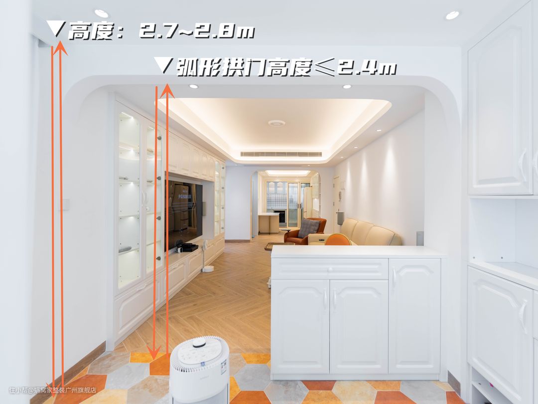 ✔解决方法:现在大部分楼层高度在2.7-2.8m之间,弧形拱门的高度不低于2.4m就不会造成惨剧。