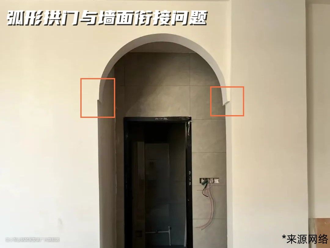 弧形拱门最常见的翻车现场莫过于拱门和墙面的衔接,只要稍不注意,不美观还不说,对强迫症来讲是超影响后期居住体验。