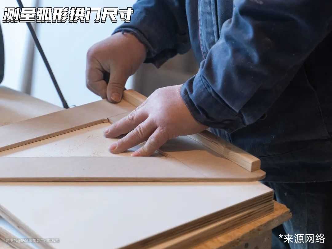 ✔解决方法:从弧形拱门的工艺出发,石膏板一定要做标准的半圆,其次这个半圆是在包石膏板以后,而不是木框打底造型!!这是很多木工师傅会忽略的。