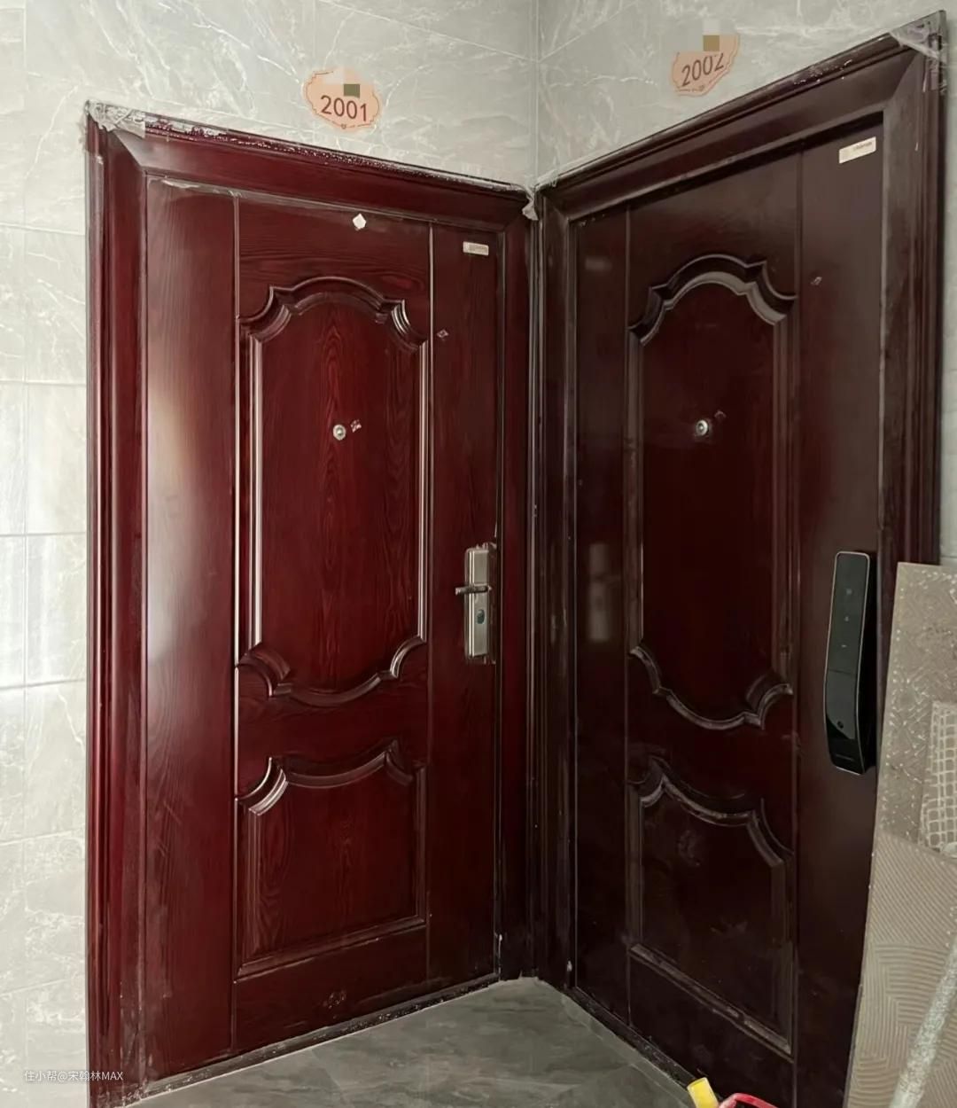 对比了同小区里其他邻居的入户门,没有一个是这么“不留情面”的。