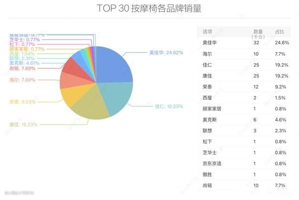 而且按摩椅这个东西不同于其他家电,不管什么牌子用的久都是有一定的故障率的,一些杂牌故障率大的离谱。所以万一后面牵扯到售后问题,肯定是选择大企业更放心,最好是实体店比较多的。下图是按摩椅2020年的TOP30销量榜,建议大家参考一下牌子找。