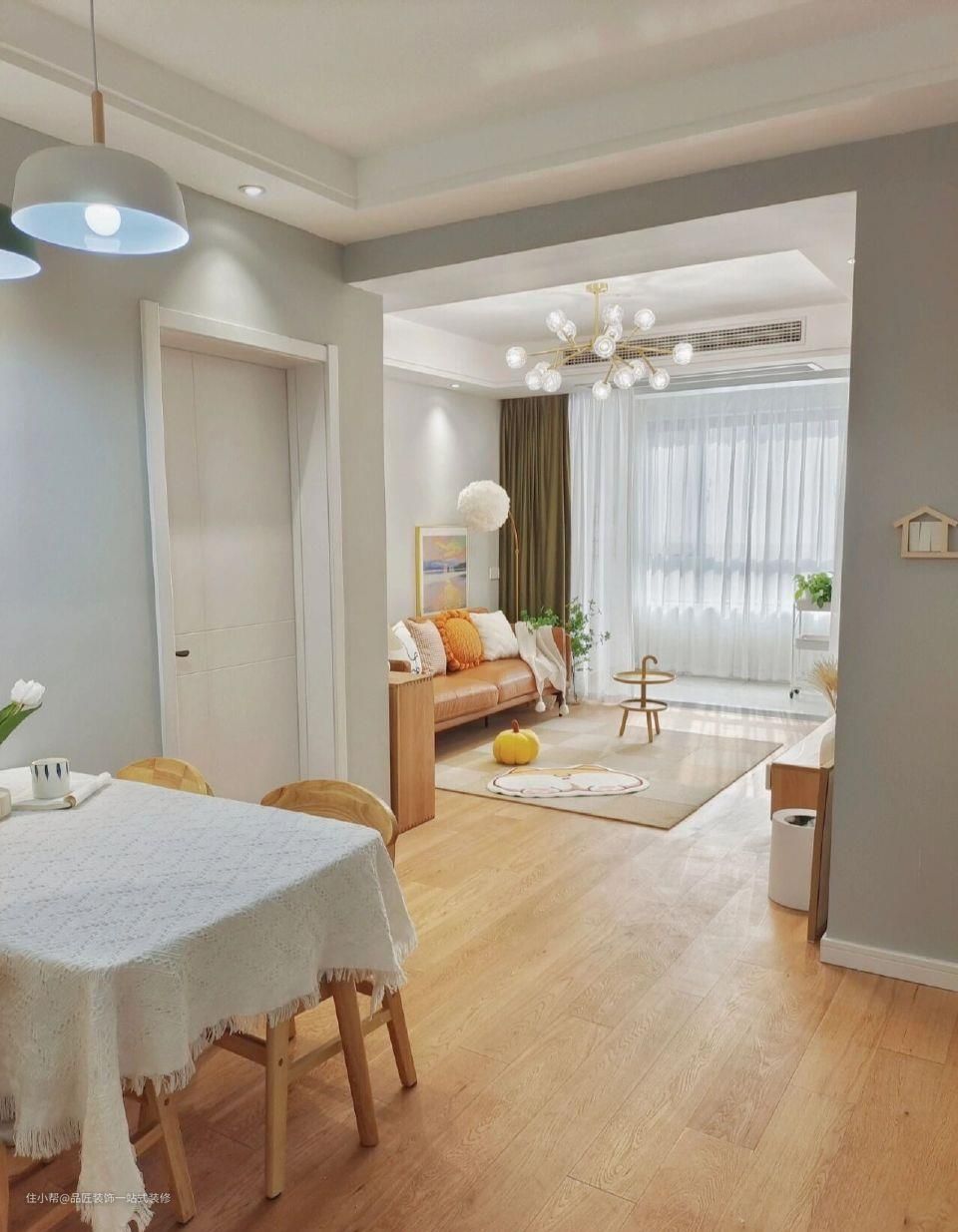 奶油原木风空间布置上讲究温馨舒适。原木自然色系的木地板是首选,脚感舒适,纹路清晰,亲近大自然。墙面选纯奶油白的乳胶漆,更有利于营造出抚慰心灵的家居环境。