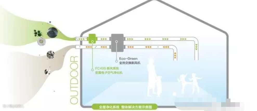 一边开着进气扇往屋子里灌过滤的新鲜空气,一边用排气扇把屋子里的废气排出去,这一进一出就构成了一个完整的全屋新风系统。