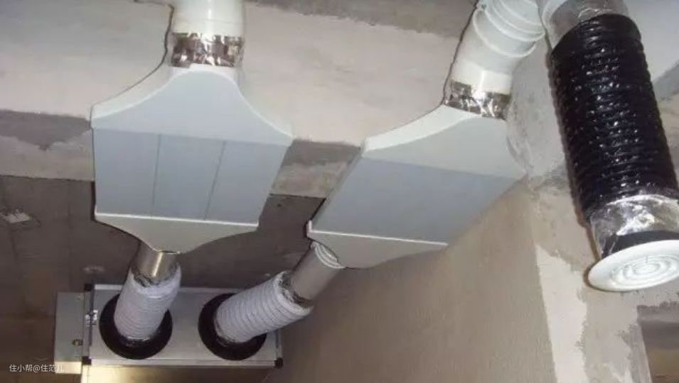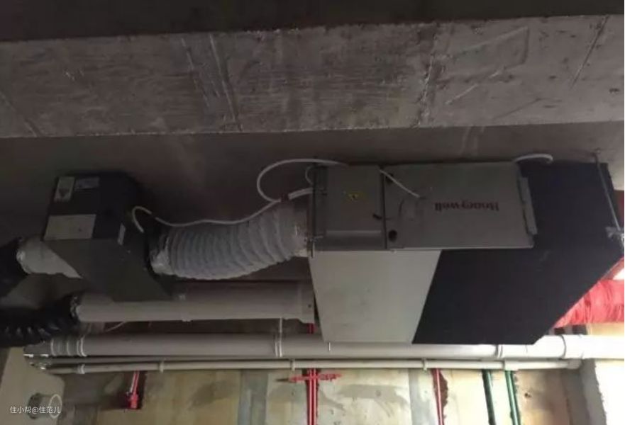 主机会接两根进出风管道到室外,这两根管道最好分开远一些,避免把屋子里的废气又吸进去,进风管的位置也得选好,别挨着别人家的厨房卫生间。