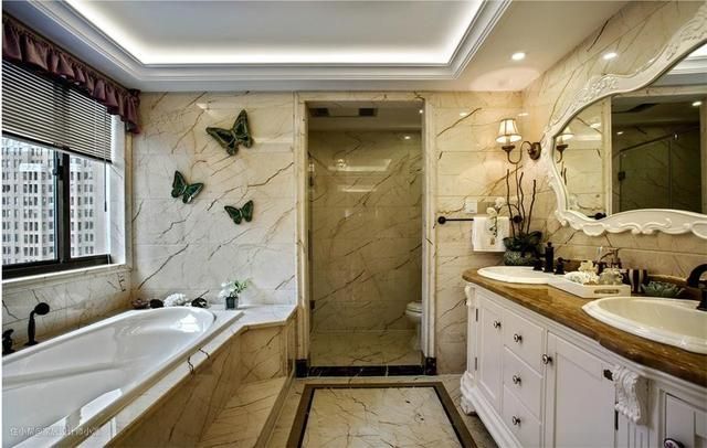 浴室的洗漱区,很多人想要安装台上盆,第一眼就被它的颜值吸引。没错,大理石台面搭配陶瓷台上盆,简直就是绝配。