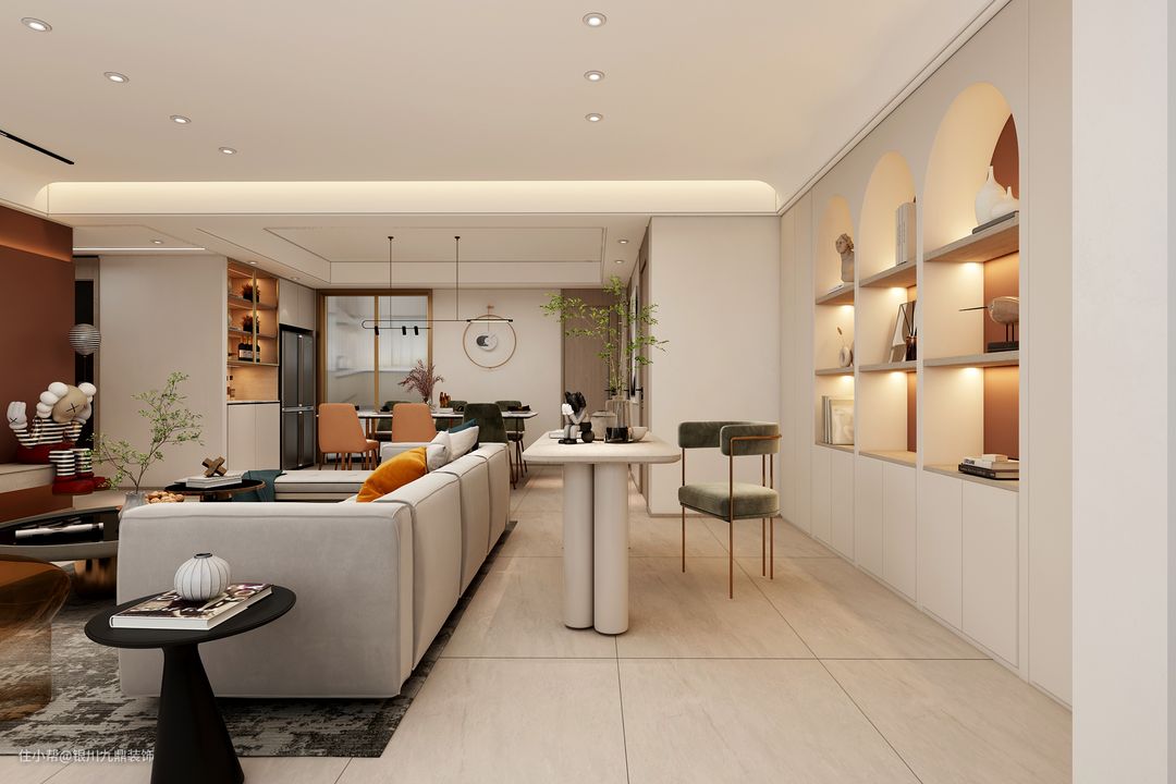 格调统一的家具和配色,干净澄明的底色,营造出清新且无压的现代质感,利用高低的错落和材质不同的肌理,创造出高级的、充满包容性的空间气场,隐喻的美感在每一个细节处散发着优雅的品味。