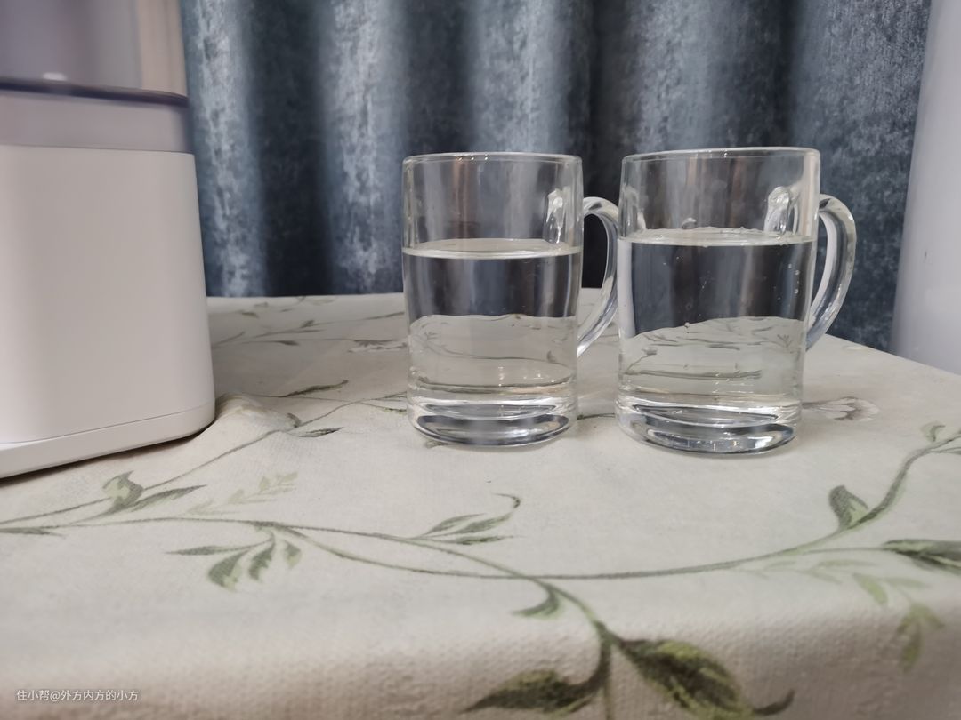 上图左侧为普通反渗透净水器过滤的水,右侧为宜盾普净饮机过滤的低钠微矿富锶水,颜色上看不出来什么差别,但是口感上差别还是很明显的。