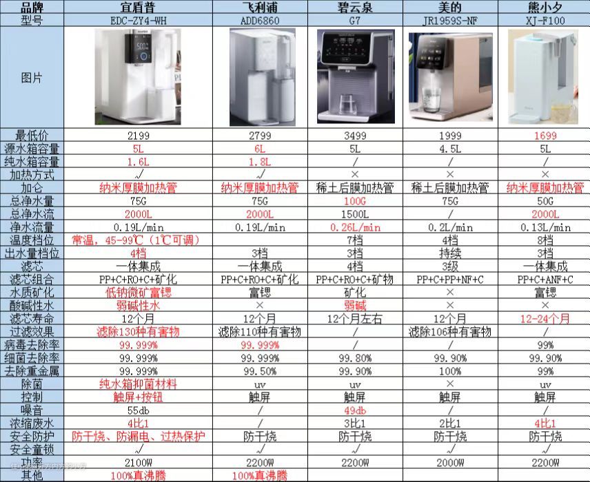 热门矿物质即热净饮机推荐:(宜盾普,碧云泉,飞利浦,熊小夕,美的等热门净饮机参数对比)
