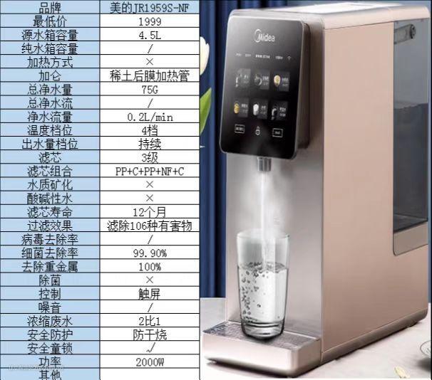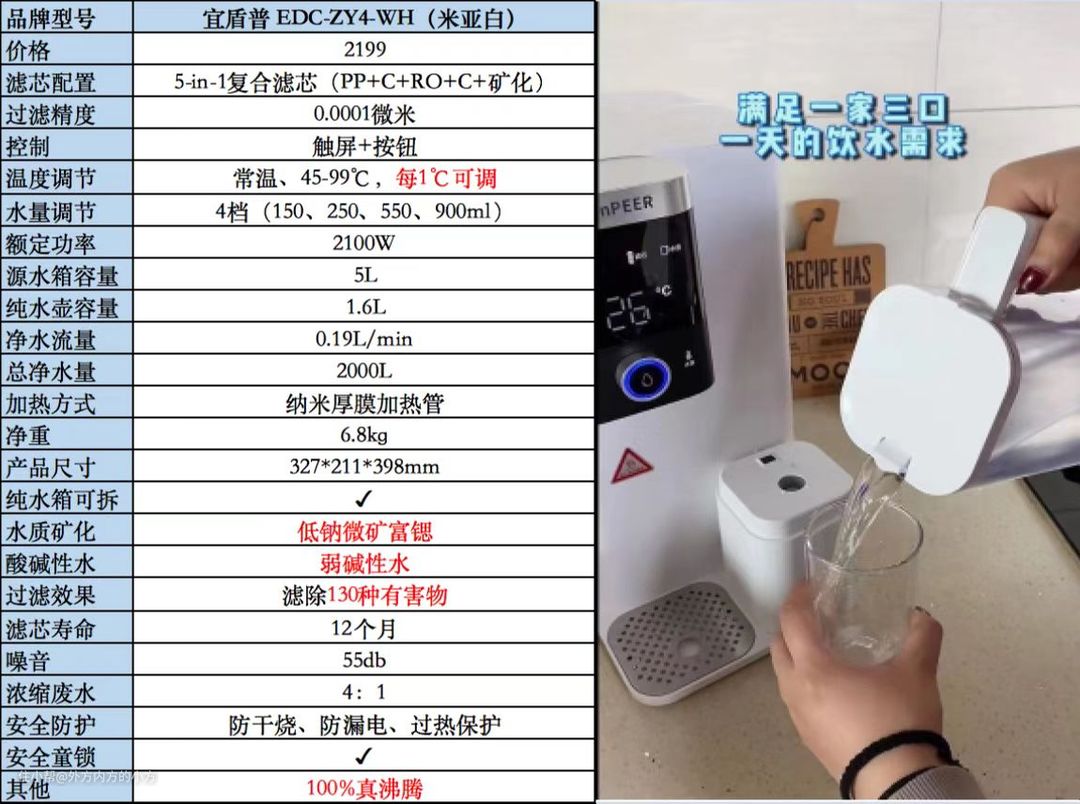 超高性价比,低纳微矿,富锶弱碱。小孩喝水,大人泡茶都可以。净化效果最优秀,纯水箱可满足家庭厨房做饭等其他需求,实用场景多。价位如果可以在2000以下那就真的是yyds了。