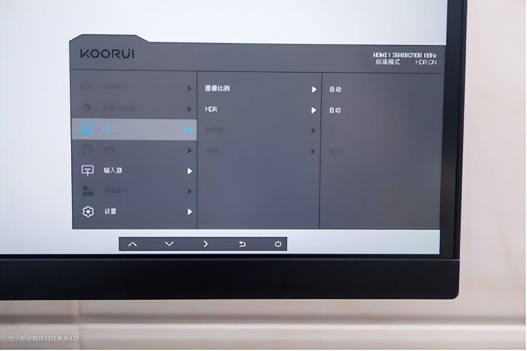 科睿P6 4K显示器的HDR功能默认是自动,也就是碰到支持的,比如说游戏,就会自动开启。像PS5支持HDR,所以开机后的第一个操作就是调整HDR。