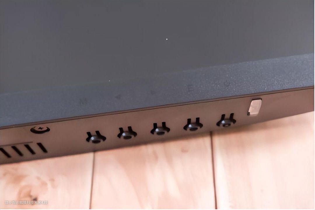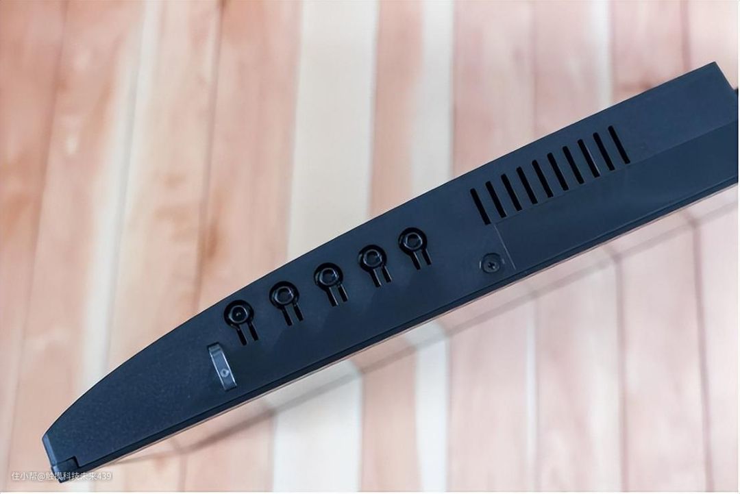 按键的旁边还设计有显示器的工作指示灯,另一边是散热孔。
